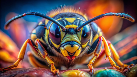 A hyper-realistic photo of a wasp with extremely fine details, generated by AI. High quality photo