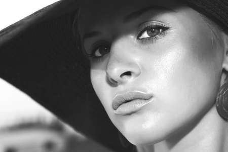 Seasonal fashion. Closeup face girl outdoor. Natural makeup. Summer woman. Beauty and care.