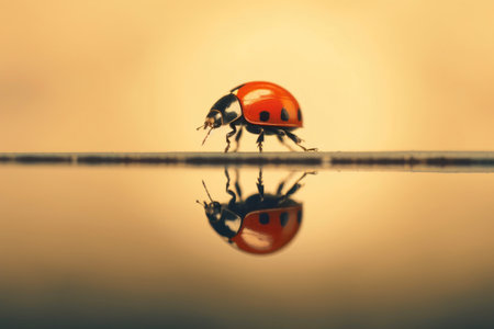 Bright Red Ladybugs with Black Spots Arranged in a Symmetrical Pattern on a Green Background Nature, Insects, Wildlife Photography AI Generative