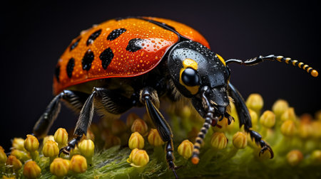 Close-Up of a Dew-Kissed Insect on a Vibrant Flower Displaying Nature s Intricate Beauty in Detail