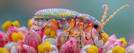 Incredible Macro Photography of a Colorful Insect Pollinating a Bright Flower in Nature s Garden