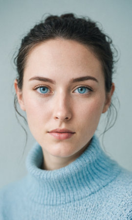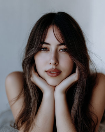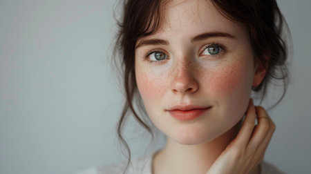 Portrait of a young woman with soft, natural lighting, minimalist background