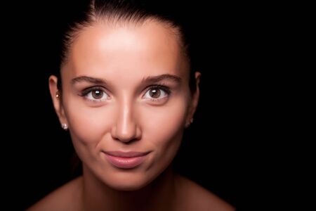 Beauty portrait of beautiful young brunette with clean skin. Care about beauty and health.