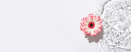 White gerbera daisy flower on aqua background in water