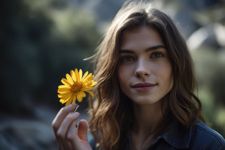 A woman with a flower in her mouth. Generative AI image.