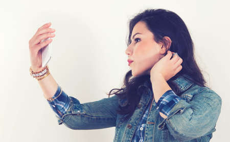 mz generation Asian Korean female hipster influencer, creator concept : taking selfies