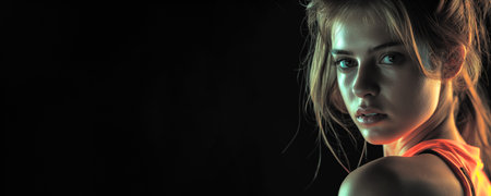 Sporty Woman in Dark Background. Suitable for gym, workout, and health advertising, for fitness, sports, and active lifestyle promotions, athletic branding, and health magazines
