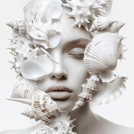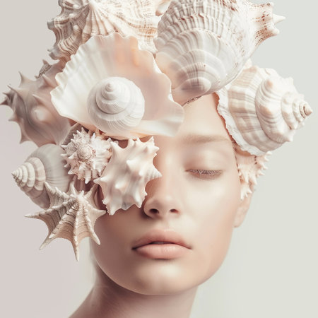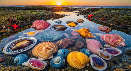 Ocean's Treasures: A Stunning Seashell Collection Creating an Abstract Tropical Masterpiece