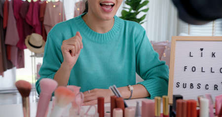 beautiful Asian woman beauty vlogger or blogger recording make up tutorial