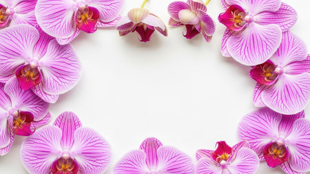 A stunning collection of pink orchid flowers gracefully arranged against a soft gradient background, perfect for nature-themed projects and designs.