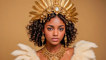 Beautiful African American girl wearing a golden crown