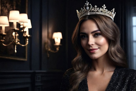 cute princess with a crown on her head decoration luxury dark background