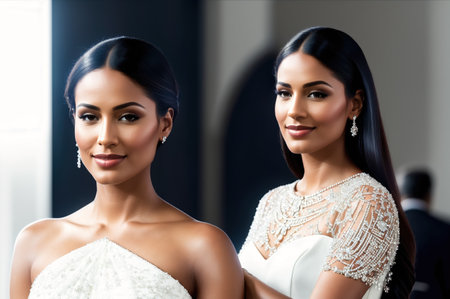 Happy female students wearing beautiful dresses on college prom graduation party.AI Generative.