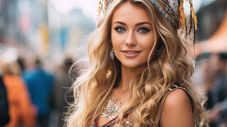 A vivid portrait of an eccentric Burning Man attendee - an embodiment of creativity and liberated self-expression amidst the festival ambiance. AI Generative AI