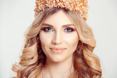 pretty woman with crown on her head bright makeup luxury decoration