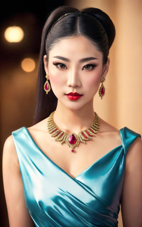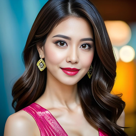 Portrait of beautiful asian woman with long brown hair and makeup