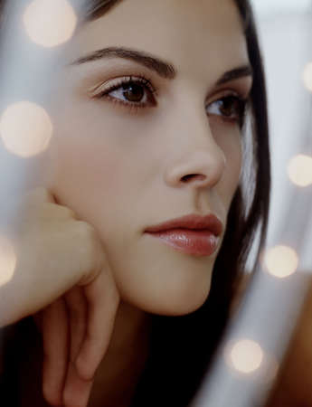 Retro fashion model portrait with beautiful makeup, mirroring