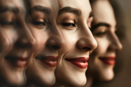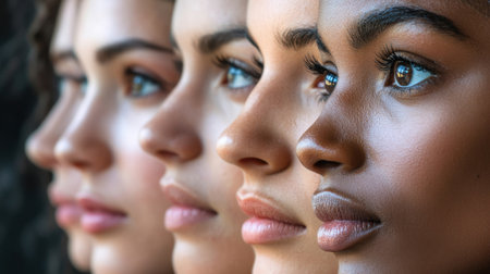 This stunning image features diverse female profiles highlighting unique beauty. Each woman showcases individual expressions and features, celebrating diversity and unity in female representation.