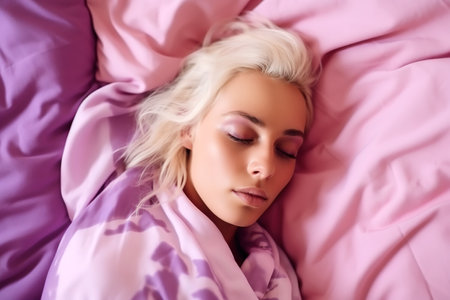 A woman is sleeping in bed with her eyes closed, AI