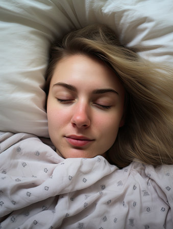 A Serene Portrait Depicting a Young Woman Who is Peacefully Sleeping in Calmness and Comfort