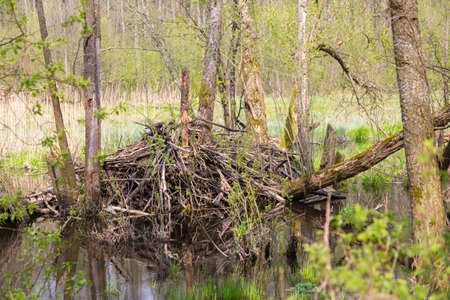 Beavers lodge in springtime,Bialowieza Forest,Poland,Europe