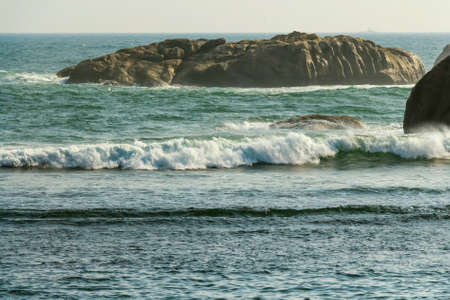 Ipanema Beach Tropical Paradise with Blue Turquoise Water Waves Sea and Boulders Rock Rocks in Rio de Janeiro Brazil.