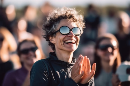 Four friends, two men and two women, are beaming with joy against a cloudy sky, showcasing their close bond. Their vibrant expressions and playful hairstyles reflect a carefree moment of friendship and happiness, perfect for capturing the essence of togetherness.