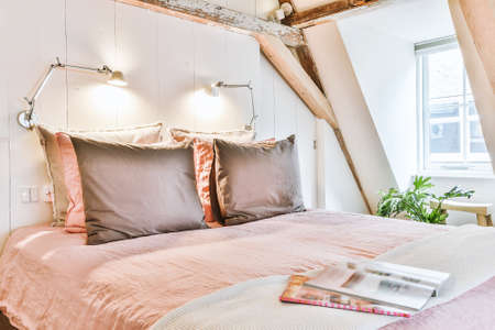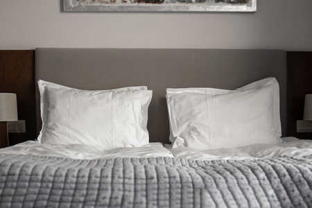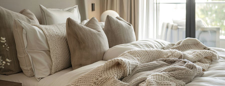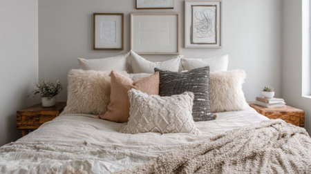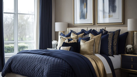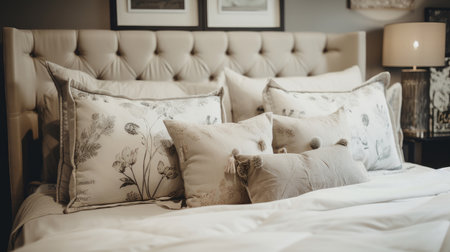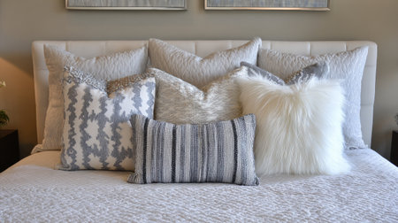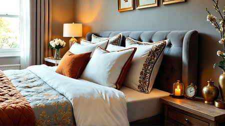 Luxurious and cozy bedroom with soft pillows and elegant home decor.
