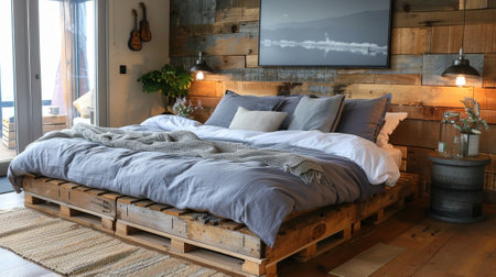 rustic pallet bed frame, add a cozy touch to your bedroom with a rustic wooden pallet bed frame, custom-made for a warm and inviting feel