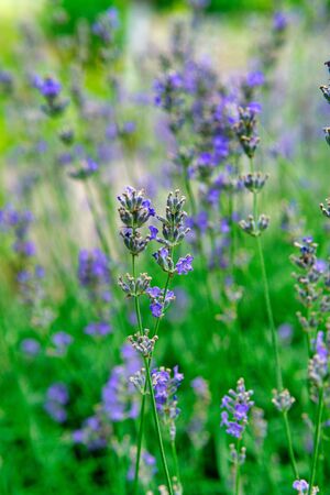 Lavanda angustifolia or garden lavender purple flowers blooming