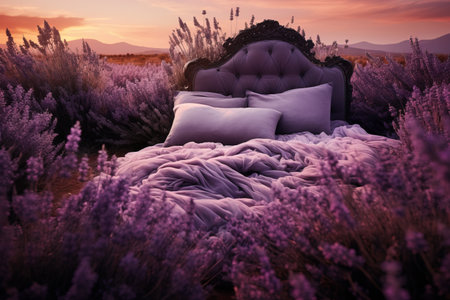 As the sun sets on a summer evening, lavender fields stretch endlessly, their purple blooms releasing a calming aroma. Nature welcomes peace and serenity in vibrant hues.