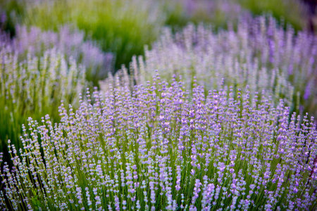 Lavender flowers blooming in a lavender field in summer