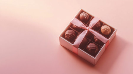 This image features an elegant gift box filled with assorted chocolates, beautifully tied with a pink ribbon, perfect for celebrations or special occasions.