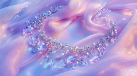 This stunning necklace showcases an intricate design with shimmering gemstones and silver accents, elegantly displayed on a soft satin backdrop, perfect for fashion and jewelry enthusiasts.