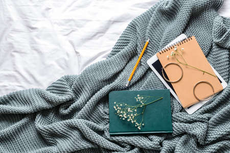 bed sheet and a blanket after waking up in the morning. cinematic tone filter