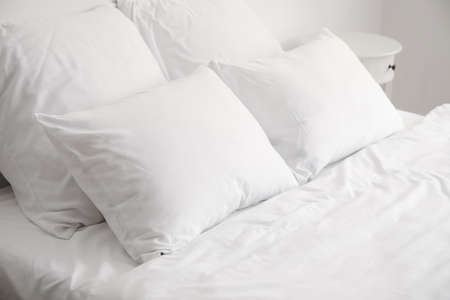 Modern white bed and pillow in the morning mood,interior decoration