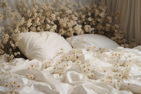 The bedding looks naturally messy and wrinkled to enhance the feeling of coziness and comfort. generative ai