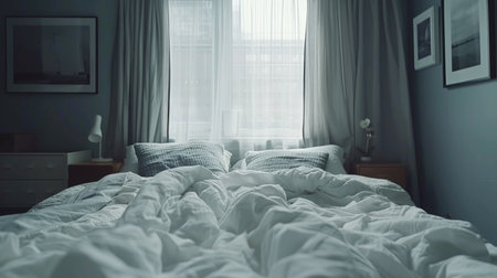 The bedding looks naturally messy and wrinkled to enhance the feeling of coziness and comfort. generative ai