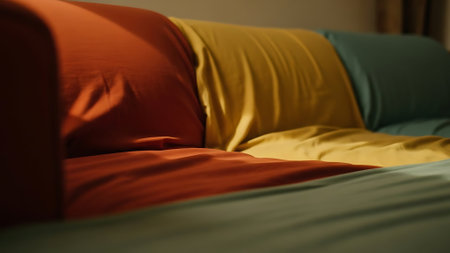 Soft bedding with rumpled sheets and pillows on a cozy bed in a serene morning light
