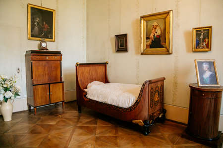 Castle interior. Bedroom. Castle Kacina, Empire Chateau near Kutna Hora, Bohemia, Czech Republic, August 8, 2020