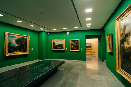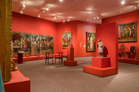 Escaldes - Engordany, Andorra - June 17 2020 : Works of art in in the museum Carmen Thyssen. The museum remains to one of significant objects in Andorra on June 17 2020 in Andorra.