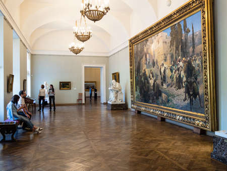 Saint Petersburg, Russia - May 14, 2022: in hall of The State Russian Museum in St Petersburg. In 2021 Russian Museum was ranking second on list of most-visited art museums in the world
