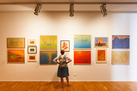 Kosice, Slovakia - August 12, 2018: Visitor to a temporary exhibition of paintings in East Slovak Gallery in Kosice.