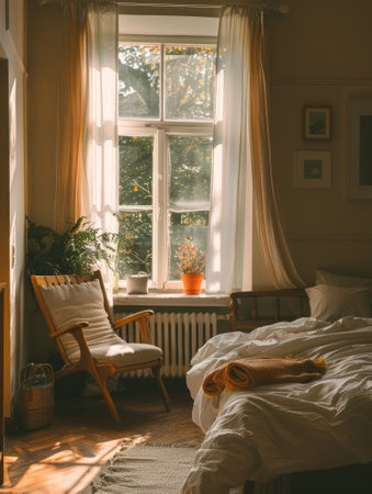 Cozy Bedroom With Warm Lighting and Vintage Decor in Afternoon Light
