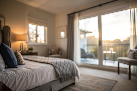 Defocused shot of a cozy bedroom with visitors discussing potential uses for the spac