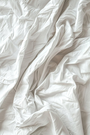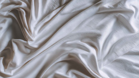 This image showcases a soft white fabric texture featuring gentle creases and wrinkles. Ideal for use in backgrounds, textile designs, and elegant decor.