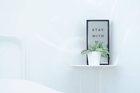 The white bed is in the sun-warmed bedroom in the morning. White bedroom in the morning.Do not focus on objects.