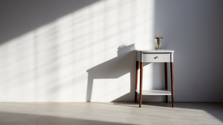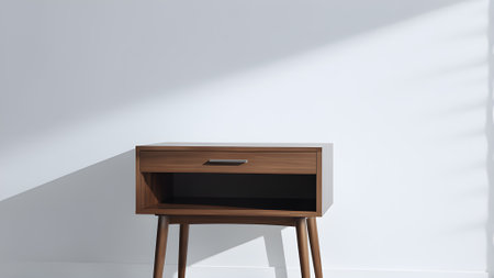 wooden nightstand on a white wall background. 3d rendering. generated by AI.