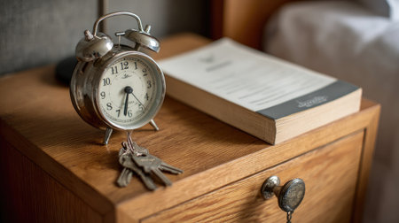 top view of nightstand, clock and book generative ai