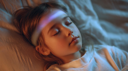 Child undergoing hypnosis treatment for illness while resting peacefully at home Generative AI